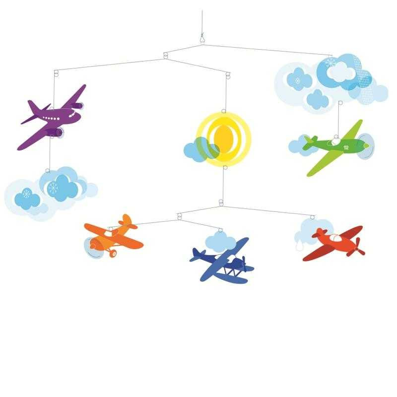 Decoratie mobila avioane Decoraţie mobilă ușoară, pentru camera copilului, cu avioane care orbitează în jurul soarelui. Colecția Djeco Mobile, o întâlnire poetică și aeriană a două lumi: design și ilustrație, un echilibru subtil între vis și realitate. Elementele sunt împachetate în hârtie absorbantă și protejate într-o cutie drăguță de carton. Mobil foarte ușor. Accesoriu adeziv furnizat.