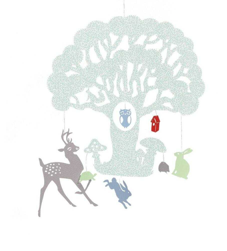 Decorație mobilă Pădure Decorație ușoară și diafană, cu copăcel și animăluțe. Decorația se atârnă, înveselind şi dând culoare camerei copilului. Nu necesită lipire, uşor de asamblat.