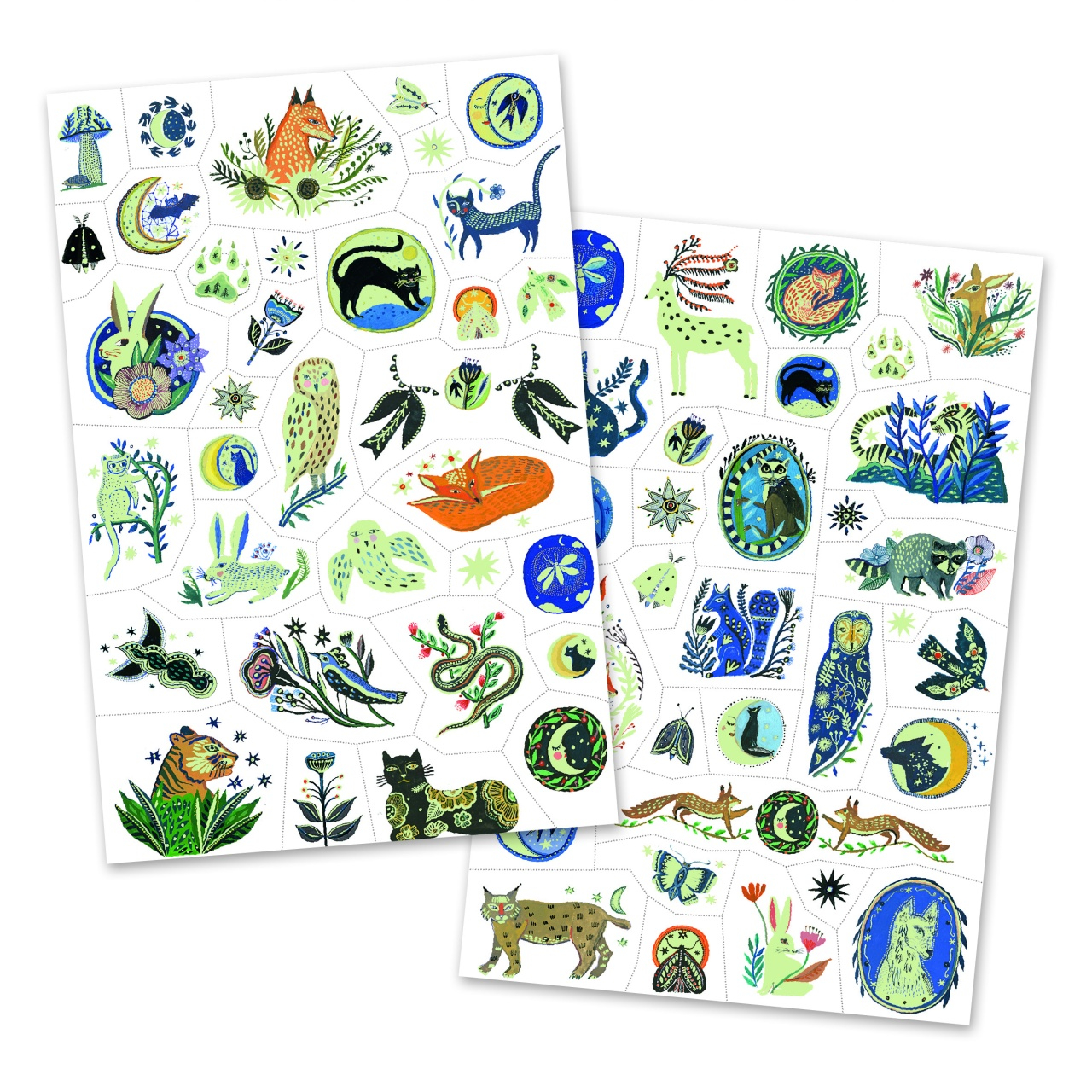 Adaugă un plus de culoare și distracție activităților zilnice cu Tatuaje temporare fosforescente Animale nocturne, Djeco.