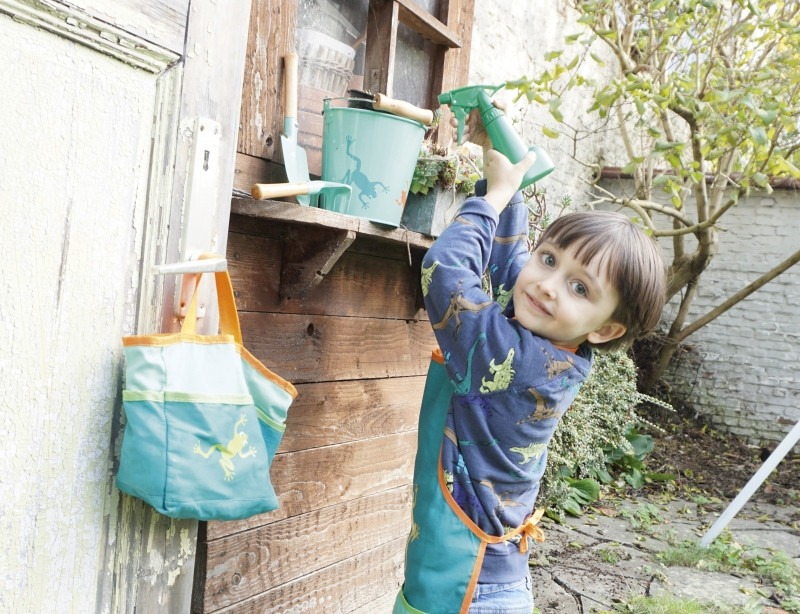 Galetusa cu lopatica si grebla pentru gradinarit Un set rezistent și frumos, ideal pentru a avea grijă de locul preferat din grădină, sau de ce nu pentru a porni în expediție pe plajă. Conține găletușă metalică, lopețică și greblă pentru micii gospodari. Vopselele folosite la pictarea pieselor nu conțin substanțe toxice.