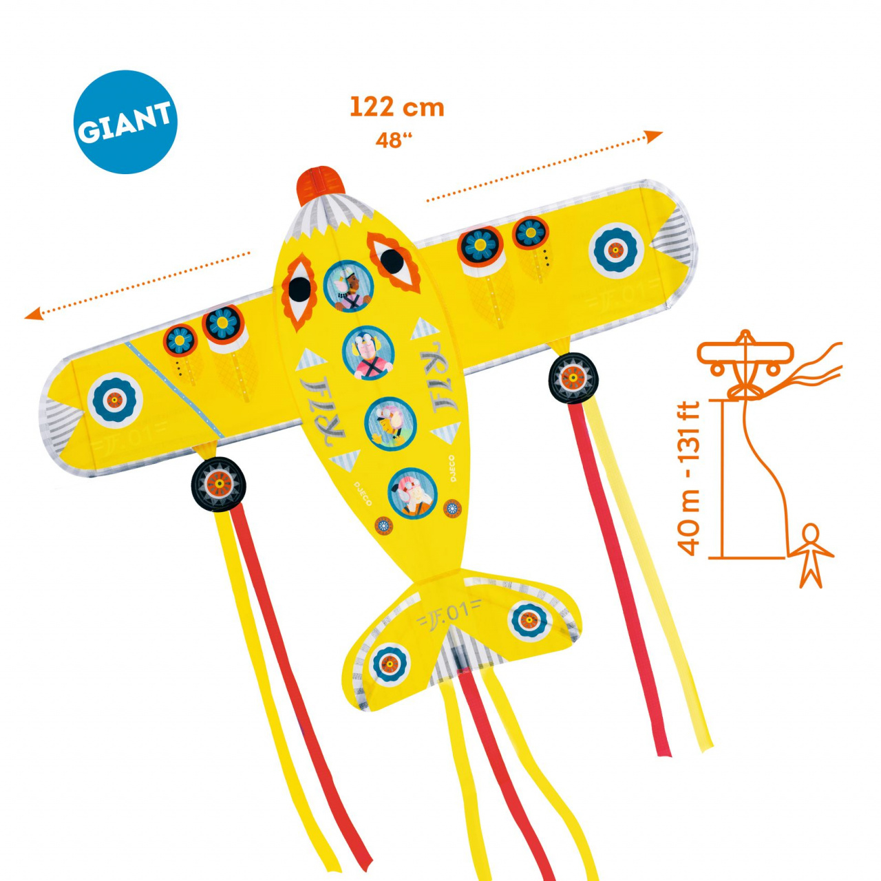 Dimensiuni: 122 x 88 cm, coada 250 cm. Vârsta recomandată: + 5 ani. Confecționat din materiale non-toxice, conform reglementărilor EN71 & ASTM. Certificare FSC®. AVERTISMENT: Contraindicat copiilor sub 3 ani. A se utiliza strict sub supravegherea unei persoane adulte. Conține fir lung. Producător: Djeco, Franța