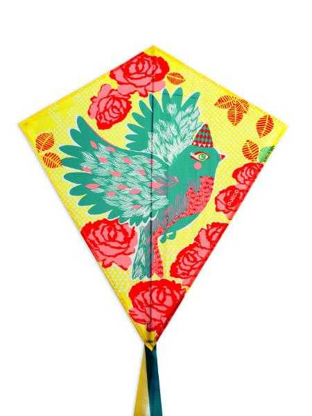 Zmeu Pasăre Zmeu colorat decorat cu o pasăre, pentru distracția unei zile cu vânt. Un zmeu pop-up ușor de asamblat: asamblați zmeul, legați un nod pentru a atașa mânerul și este gata de zbor! Ridicarea este ușoară, iar zmeul este foarte ușor și lesne de manevrat. Până la 5 kg tracțiune. Conținut: zmeu cu coadă (structură din poliester și fibră de sticlă), mâner inclus (lungimea firului 40 m) și husă de depozitare.