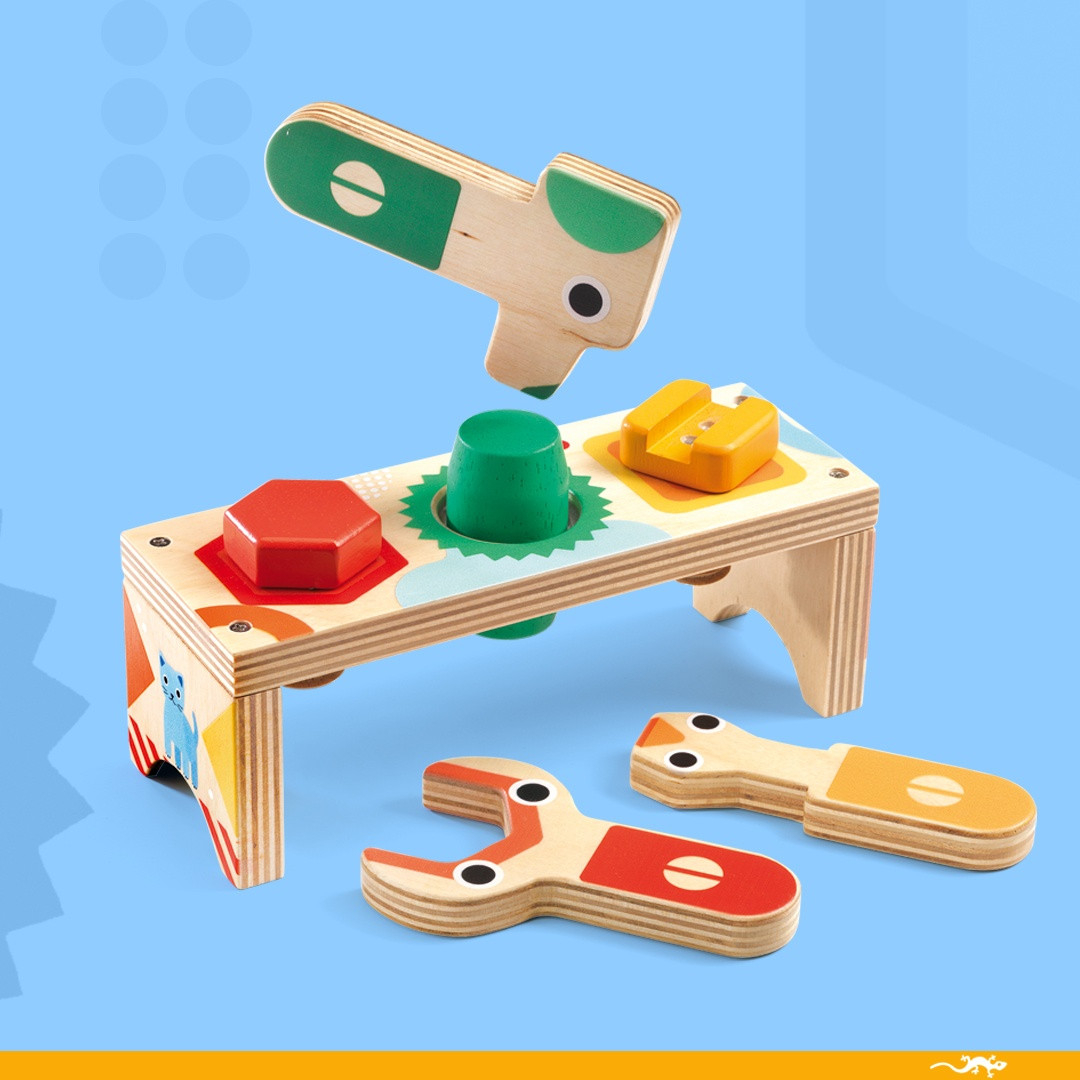 Adaugă un plus de culoare și distracție activităților zilnice cu Banc de lucru din lemn Bricolou, Djeco.