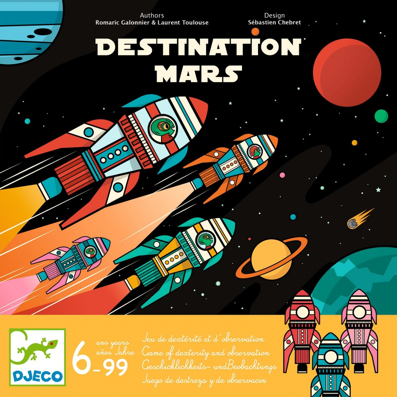 Vârsta recomandată: 6-99 ani. Un joc pentru 2-4 jucători. Confecționat din carton certificat FSC®. Producător: Djeco. Joc de societate Destinatia Marte, Djeco - descarca aici regulile jocului