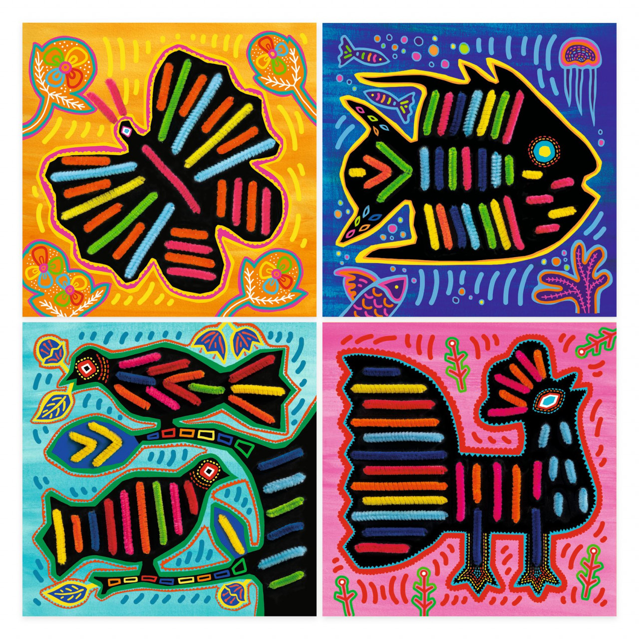 Tablouri cu sârmă plușată Super soft O activitate creativă, similară cu țesutul, de creat tablouri cu o mulțime de fire plușate, colorate și ușor de folosit. Urmând instrucțiunile, copiii trec firul de sârmă plușată prin găurile mari de pe planșele ilustrate. Vor crea un design vesel și colorat, inspirat de arta Kuna din America de Sud. O activitate simplă și originală, în care copiii folosesc fire de chenille (sârmă plușată) pentru a realiza 4 modele frumoase. Conținut: 4 planșe din carton perforate și ilustrate (20 x 20 cm), peste 130 sârme plușate (2 dimensiuni și o mulțime de culori.), broșură cu instrucțiuni pas cu pas.