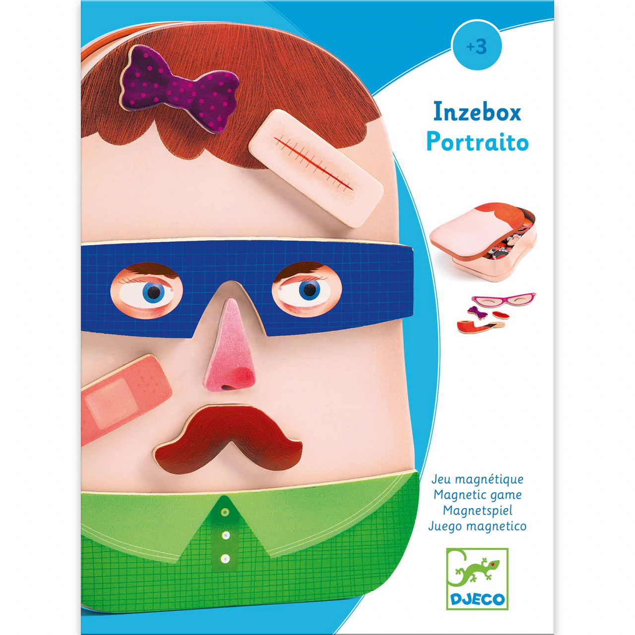 Joc cu magnet Portraito Inzebox: un nou mod de a te juca cu magneți! Setul include o cutie metalică siluetă de care copiii pot lipi piesele magnetice din lemn. Portraito este un joc distractiv în care copiii pot crea portrete de fete și de băieți, cu stări și expresii diferite! Ambele părți ale cutiei sunt ilustrate, ceea ce înseamnă că ambele pot fi jucate. Piesele pot fi depozitate cu ușurință în cutia metalică la sfârșitul unei sesiuni de joacă. Perfect și pentru călătorii! Conține o cutie metalică și 41 piese magnetice din lemn.