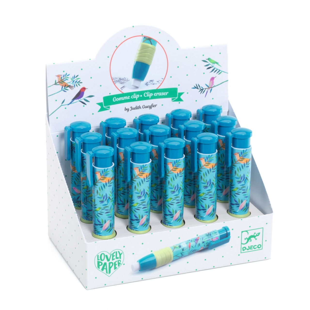 Radieră tip stilou Judith O radieră ușor de folosit fiind sub forma unui stilou, frumos ilustrat. Aproape de vârf are o porțiune siliconată anti-alunecare, groasă, pentru o prindere sigură. Capac cu clips de agățat. Radiera are aprox. = 10 cm. Lovely Paper Djeco este o colecție de articole de papetărie rafinate și delicate, cu ilustrații frumoase pentru a-ți înveseli viața de zi cu zi.