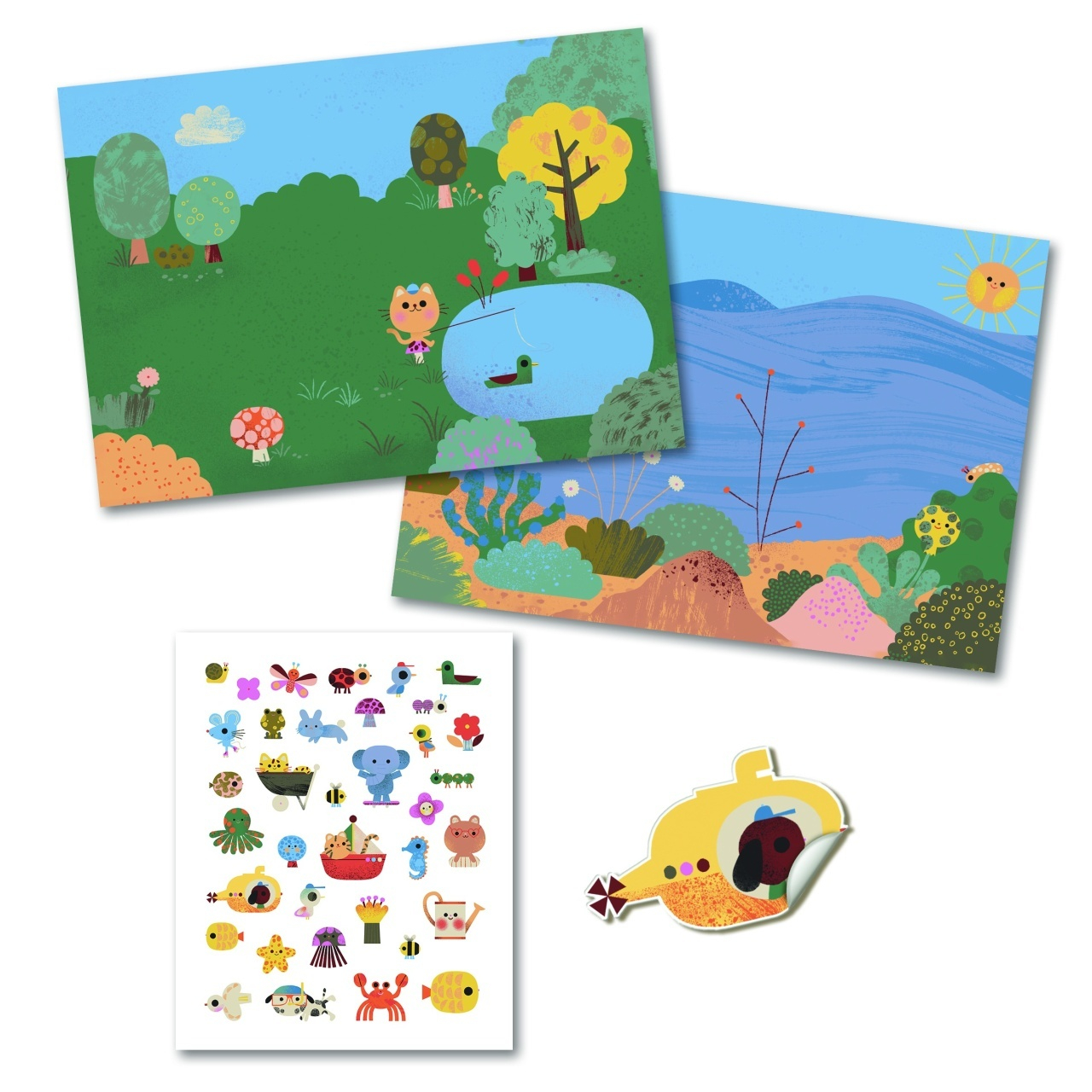 Descoperă Abtibilduri repozitionabile La mare si la tara, Djeco, alegerea ideală pentru a stimula curiozitatea și imaginația într-un mod plăcut.