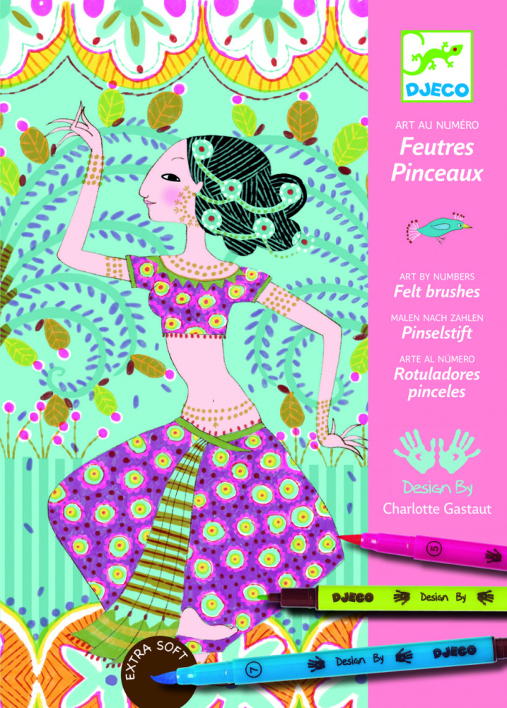 Vârsta recomandată: 7 - 13 ani. Conține: 4 planșe ilustrate, 8 carioci pensulă cu vârf dublu, unul flexibil - tip pensulă, unul foarte fin pentru contur, cărticică cu instrucțiuni în imagini, pas cu pas. Conform ASTM D-4236. AVERTISMENT: Contraindicat copiilor sub 3 ani. A se utiliza sub directa supraveghere a unei persoane adulte. Producător: Djeco, Franţa.