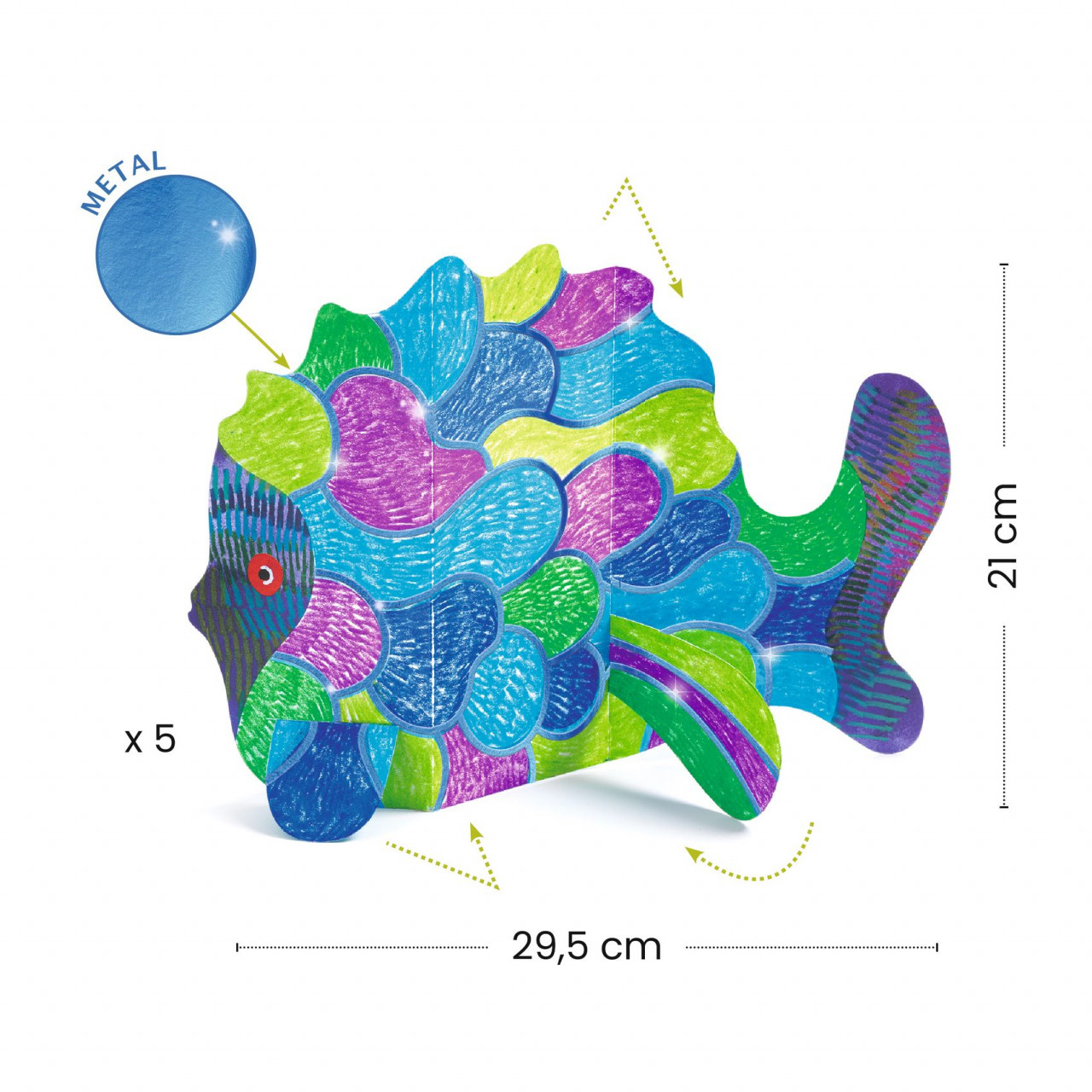 Joc creativ In valuri - de colorat, pliat si asamblat Un set de colorat pentru a crea o minunată lume oceanică cu detalii metalice. Mai întâi, colorează-le, apoi pliază și asamblează piesele. O activitate simplă cu rezultate deosebite. Partea metalică are rolul de a separa culorile.