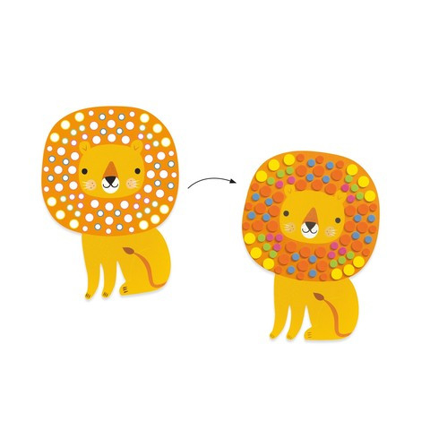 Mozaic Animale din junglă Joc creativ din seria Mozaic. Trei imagini pe care copilul le alcătuiește pas cu pas, lipind în locurile destinate piesele pretăiate din burete. Jocul conține: 3 planșe preilustrate (elefant, leu, rinocer), 10 coli de burete colorat, divizate în aprox 300 cuburi-mozaic, manual instrucțiuni.