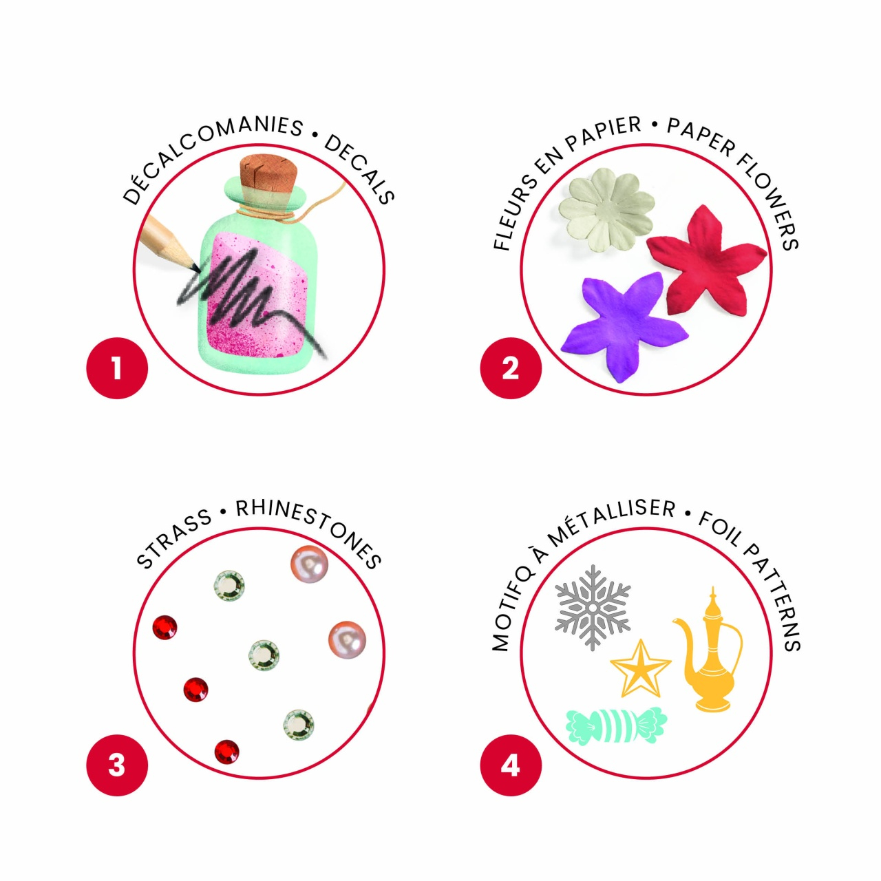 Set creativ 4 în 1 – Spărgătorul de Nuci | Artă inspirată din baletul clasic 🎄 Inspirat din fermecătoarea poveste a baletului „Spărgătorul de Nuci”, acest set creativ aduce la viață patru scene emblematice, printr-o combinație de tehnici spectaculoase: transferuri, flori din hârtie, pietricele autoadezive și foi metalice. Un adevărat regal artistic pentru copii creativi! Caracteristici: 4 ilustrații reprezentând: Ajunul Crăciunului, Valsul fulgilor de nea, Dansurile lumii și Dansul Zânei 4 activități într-un singur set: • Transferuri prin răzuire • Flori din hârtie • Pietricele autoadezive • Decorare cu foi metalice Fiecare planșă combină toate cele 4 tehnici, pentru un rezultat wow! Activitate calmă și creativă, cu rezultate demne de înrămat Recomandat pentru: Copii fascinați de balet, artă și povești clasice Dezvoltarea îndemânării și a simțului estetic Activități creative de iarnă, acasă sau la școală Conținut: 4 planșe ilustrate (20 × 20 cm), flori din hârtie, 100 pietricele autoadezive, foi metalice decorative, coli de transfer și instrucțiuni pas cu pas